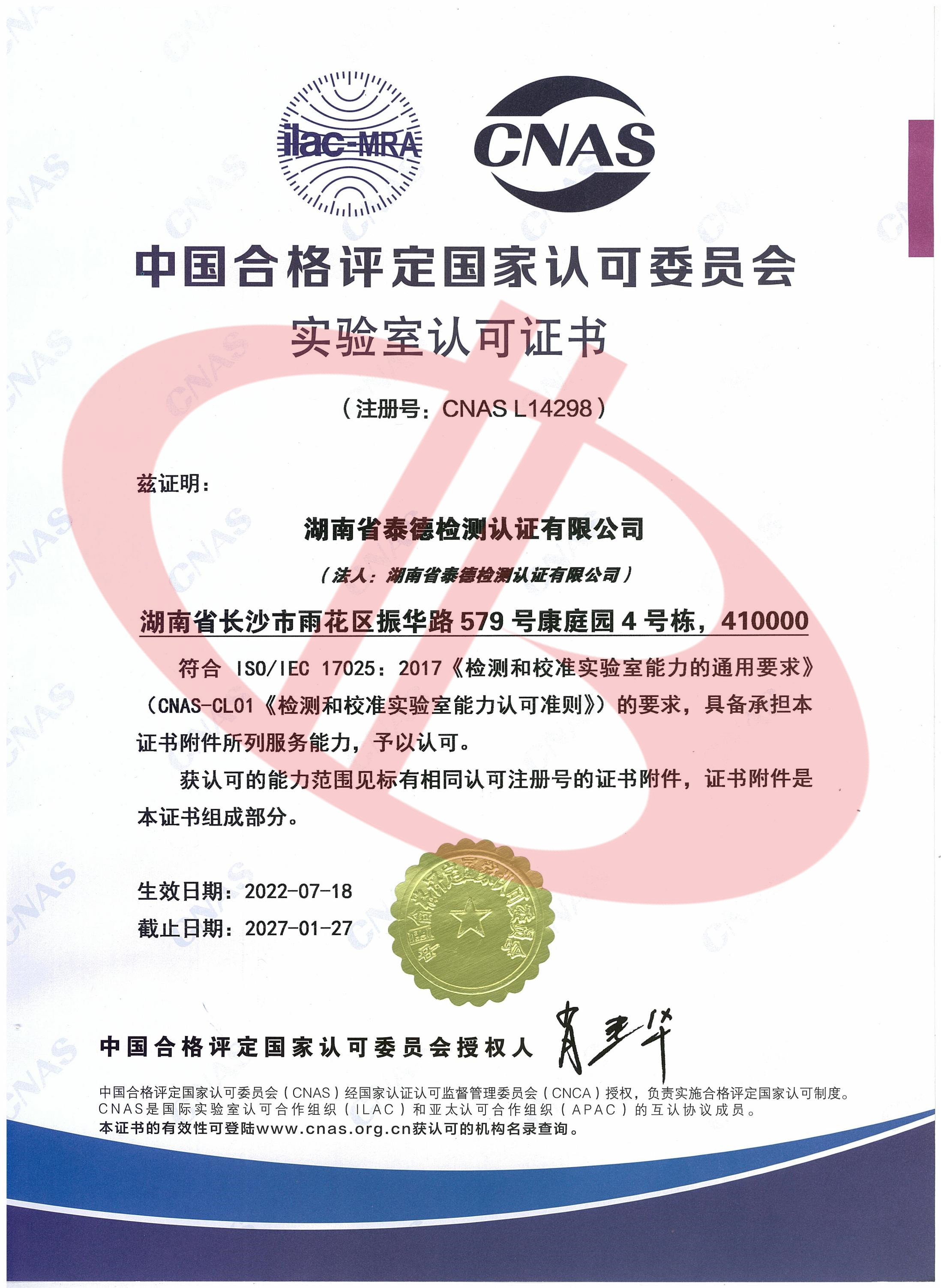 CNAS實(shí)驗(yàn)室認(rèn)可證書(shū)