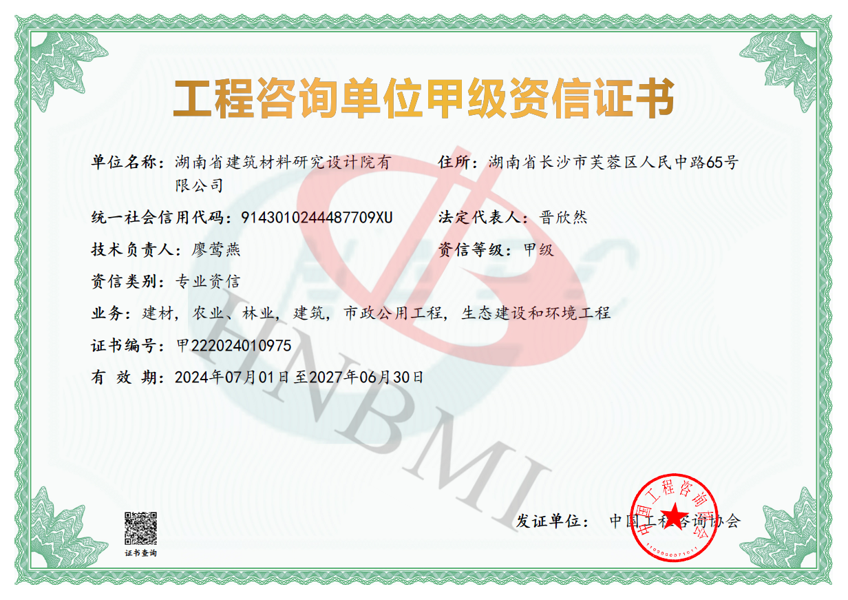 湖南省建筑材料研究設(shè)計(jì)院有限公司的前身為湖南省建筑材料研究設(shè)計(jì)院,成立于1958年,是1993年全國(guó)首批榮獲國(guó)家建材行業(yè)設(shè)計(jì)、工程總承包甲級(jí)資質(zhì)的四個(gè)科研設(shè)計(jì)單位之一。